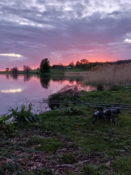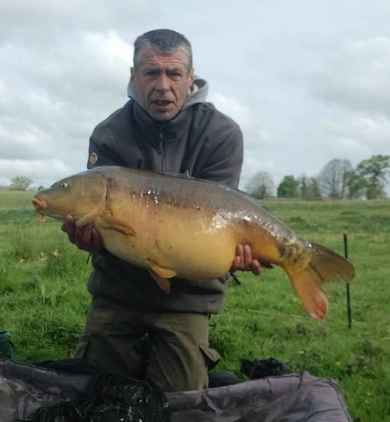 This is another session that seemed to start out badly for various reasons. I got to the lake to discover someone in the swim I had been baiting up, no major problems as there is 45acres of lake, so I chose a swim opposite, albeit over 150metres away, so not going to interfere. A pallet had blown in and drifted up the lake into the margins, so I attempted to pull it out. As I did so a rotten piece broke and the pallet fell down my leg, with a nail ripping a brand new pair of combat trousers from thigh to shin, and giving me a couple of cuts on my thigh. I already knew that I had left my coffee and sugar at home, so after changing into clean trousers I took a trip to the shop in Botesdale for some antiseptic and coffee and sugar. Last night I had ducks taking off and flying through the right hand lines twice, on the second occasion for some reason my middle white Ipro indicator body broke in two, so I had to bodge a repair. This morning just drinking coffee and the male swan swan through the right hand line, getting tangled in the process and eventually smashing me up. I re-rigged and was sat with just two rods in the water, thinking I'd recast after walking Sky round. Another coffee and the left hand rod screamed off, this was a better result on the reverse combi-rig and 12mm pop-up when I landed a 26lb mirror. That puts a smile on the face! - Last week