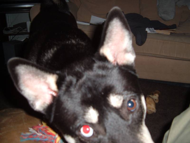 The heterochromia, one blue and one brown eye is a husky trait as well. They can have either blue or brown eyes, unlike most breeds who have brown eyes, but they can have one of each.