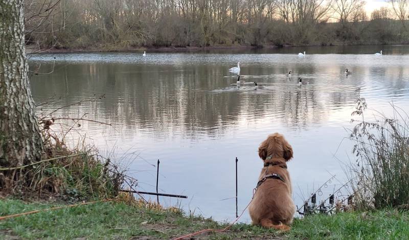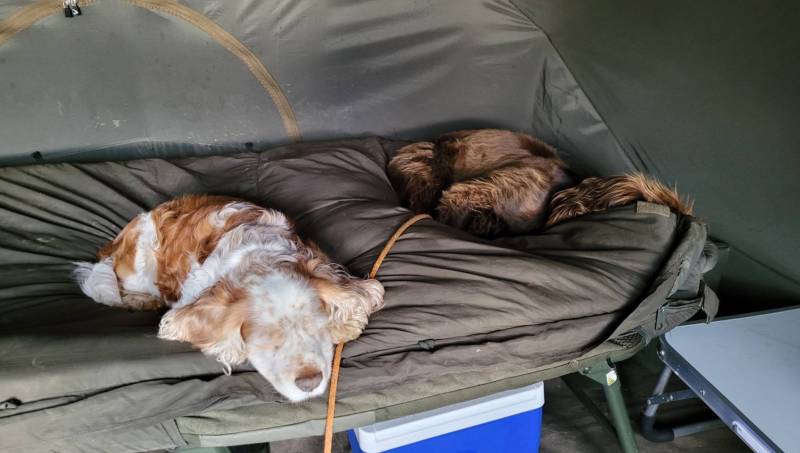 More carp dog practice for Max - he is easier to handle at fishing than he is at home tbh - so far so good, this week I tried both dogs off lead whilst I barrowed to the swim - any fears he would run off were soon gone as he followed me close behind all the way - impressed! George wandered off as usual - not far but got told off several times, think he is trying to escape Max the poor old boy - not used to sharing.1 point
