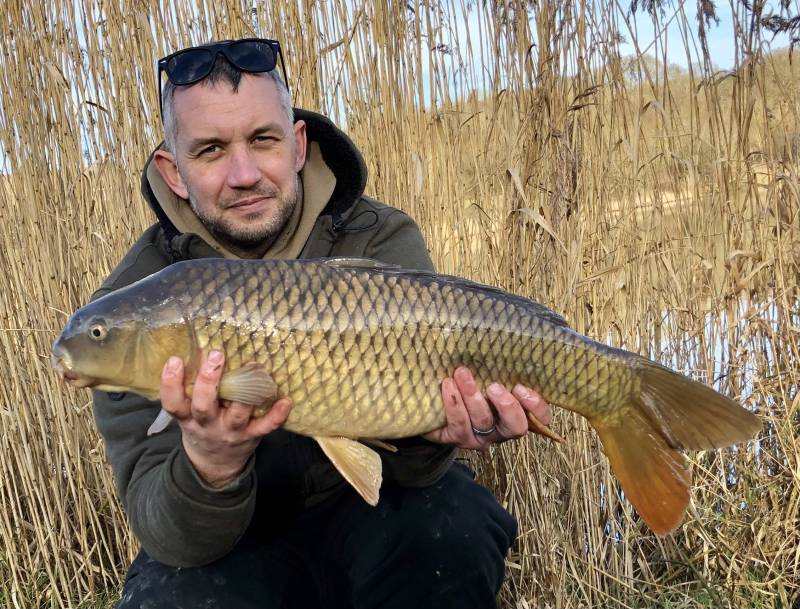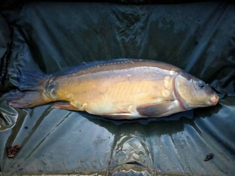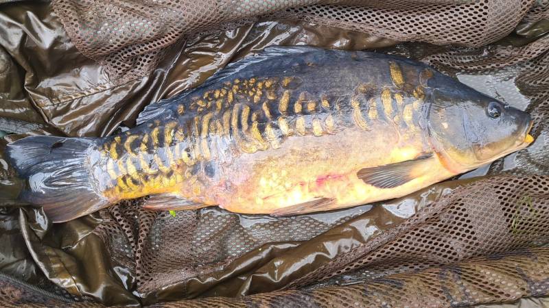 How you doing? This session was a rather decent one, despite managing to leave my hookbait bucket at home with my medium Spomb in it. I spent an hour cursing and swearing as I used the small Spomb to put a bucket of maize and birdfood in. The first night produced a tench of around 6lb on a straight out of the bag bottom bait, which somehow managed to go across the middle rod. The 2nd night was quiet. Last night around 11pm I had a strange occurrence on the middle rod, it pulled to the right, with what appeared to be a run, but there was nothing there, so I recast with a fresh stringer. At 3am I had the same thing happen again. I think that it was a goose or swan swimming through the line just in front of my rod tips, or a swan picking the hookbait up. A couple of miscasts with stringers, but 3rd time lucky. I was sat drinking coffee and eating breakfast when the rod went with a 22lb mirror, one of last years stocking, and a 10lb weight gain. Caught on a 360 rig with a meshed 15mm Nutty Bait pop-up with a stringer of 6x 18mm Nutty Bait boilies. This morning I was starting to tidy up ready to pack up when the right hand rod went, which was the rod over the maize, and managed a rather nice 26lb mirror on the 'sliver' of Monster Crab pop-up on a reverse combi rig. This fish was from the 2021 stocking and went in at 11lb.9 points -