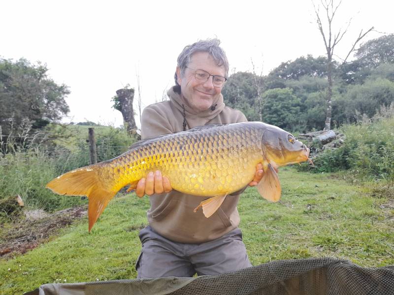 Where I live there is an abundance of disused ,deep quarries,some are barren,and fishless...but a few have some surprises and have held carp and other species for many years .. When you fish these places,you have to think like a miner ,and find the galleries, which are mined ,and step down into unimaginable depths ,find the galleries and you find the patrol routes.. The weather was awful ,I had a river running under my shelter,at one point ,wind,rain,hail,thunder,lightning..and a big fear of falling branches made it interesting..,then all the mica,clay residue gets everywhere...anyway .. I found the marginal gallery, and fished very simple running lead tactics ,using the Ressi specials I use a lot..After the storm had passed ,I seen kingfisher,heard deer rutting,and woodpeckers, nature at its best ..9 points