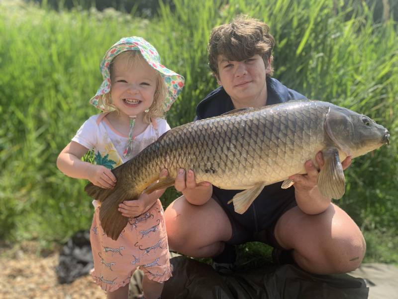 Went with the kids this weekend. Blanked the first 24hours. Then we got focused. Decided I wasn't happy with my main spot, so I put my big boy pants on and went for it 18.5 wraps, 2 rods or the horizon and one on the edge of some reeds where I had seen some bubbles, I had prebaited my daughters spot the night before with some boilies and left it, naturally that one was the first to go at 10pm, she cast it and felt for the drop herself and we baited it with 5 x spods and a few extra boilies she pulted into the zone, it ripped off when we were tucked in and listening to a book on audible. The summer I robbed a bank by David O'Doherty, if you have kids it's a great book. And naturally it decided to wipe out all my other rods, but we got it in and I cleared up the mess it made. (yes I was done in and a bit sun rouged) We lost her rod in the carnage and she wanted to sleep so one of mine went onto her spot, one to the long spot and one to the left. We were awoken to a savage take from the long rod. This came in like a ball of weed until it got in range of my other lines. Took the right one out. During the photos I had an out of body experience. Then I ditched the right hand rod spot and went long, so with 2 on the spot I whacked out another 10 X spods and had breakfast. Then the right hand long rod was away,we had spotted them all showing in the middle the evening before and this spot gave me the best shout not being able to move, this one came in well and we moved the other rods out of harms way, fought hard close in but without hassle, and although the smallest of the trio of commons but finished off the trip nicely. Lovely weekend with the kids, had lots of fun and caught 3 and lost none, we did some bird spotting, saw some fish on the other lake spawning and caught some fish Happy days.13 points -