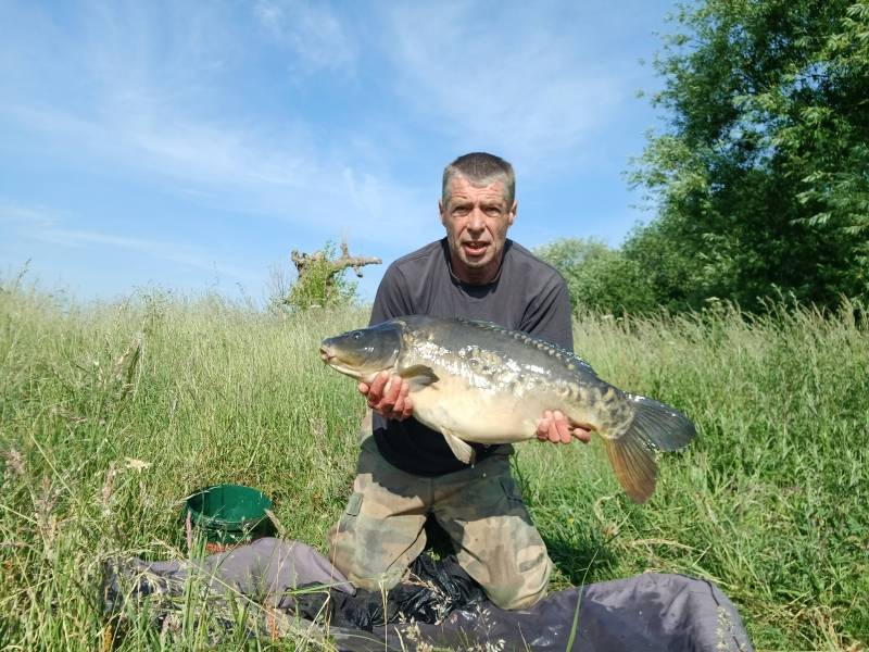 Got out for a night over the bank holiday. The syndi is closed for spawning so I visited a day ticket down in the Nene Valley. It was absolutely rammed as one might expect given the timing, but I managed to find a few carp in a quiet corner. It was dead hot, so I flicked a couple of zigs out just under the surface. It was clear the carp were just sunbathing, so I was expecting to have to wait for the sun to drop behind the trees for any action. So it proved with a take around 19:30 which resulted in a lovely grey linear. Onto the deck for the night and I realised I had a problem – I’d forgotten the spod rod! I found one of those Wolf X-Spod jobbies in my bag (bought it ages ago and never used it) and bodged it onto one of my carp rods. It worked a treat…. those X-Spod thingys are great! I put 2 on the deck and left one up in the water. At 02:30 I was away off the baited spot and a nice little cricket bat common was landed. Re-did the rod and 04:30 saw an awesome chestnut linear landed - worth a pic this one. Photo’s done, I was half expecting that to be it but at 09:00 the zig rod went. It kited to my right past several other anglers and the hook pulled when I over-gunned it trying to stop it. Still, a good sign. In come the rods on the bottom, zigs on all of them, and back out they go. About 10:30 I get another take and another cricket bat common is in the net. I planned to stay a bit longer after that but as the heat increased, I decided I was happy with what I’d had so called it a day. A great little session in the end.15 points