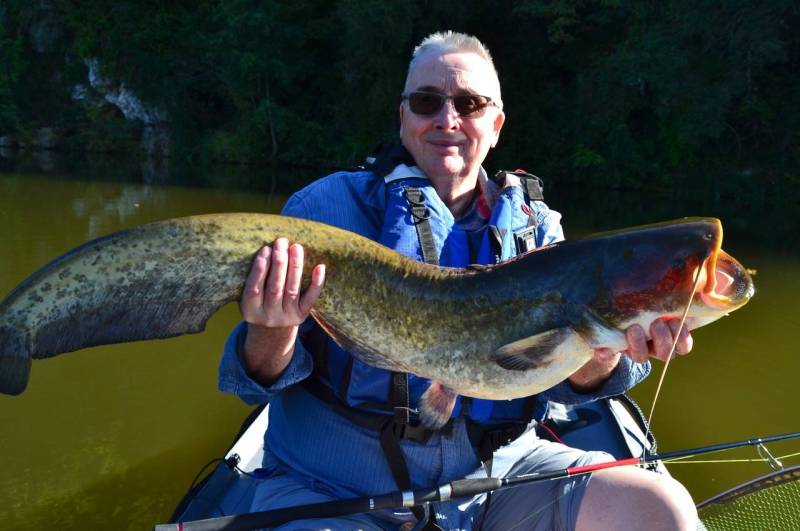 Not too many catfish, fortunately! Yesterday I took my inflatable canoe upriver of Carjac. Lovely afternoon on the river..... The boat has not been used this last couple of years, still looks good.... and had one silure, taken on a big yellow/black shad lure fished under a shear cliff amongst fallen trees. I was lucky to land it! -