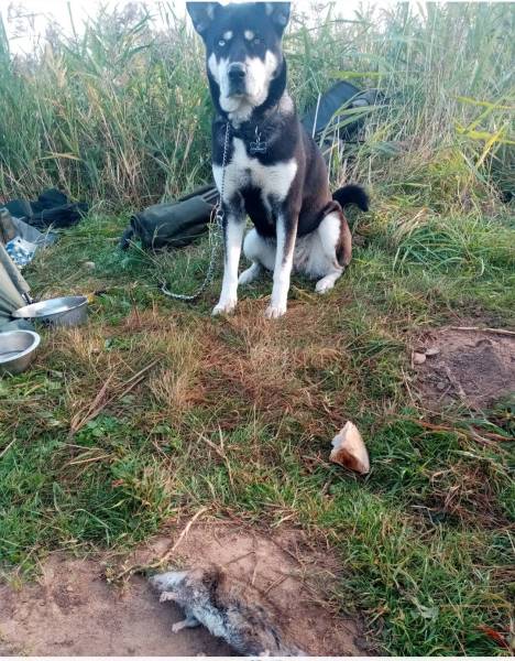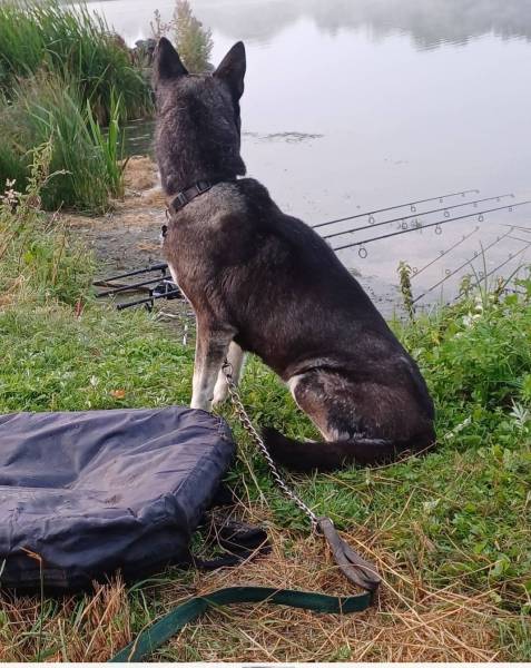 Sky is still fishing with me, and still can't be let off lead. Today's extra dietary items were a goose egg she found in the margins and a dead thing that she found as I took her for a pee. She won't pee or more in the swim, has to go for a short walk.