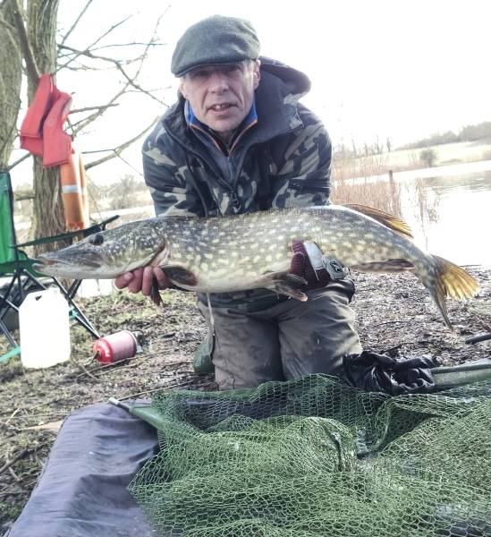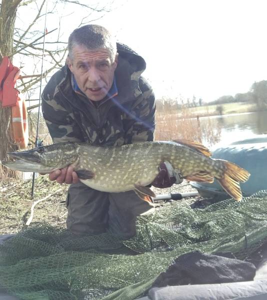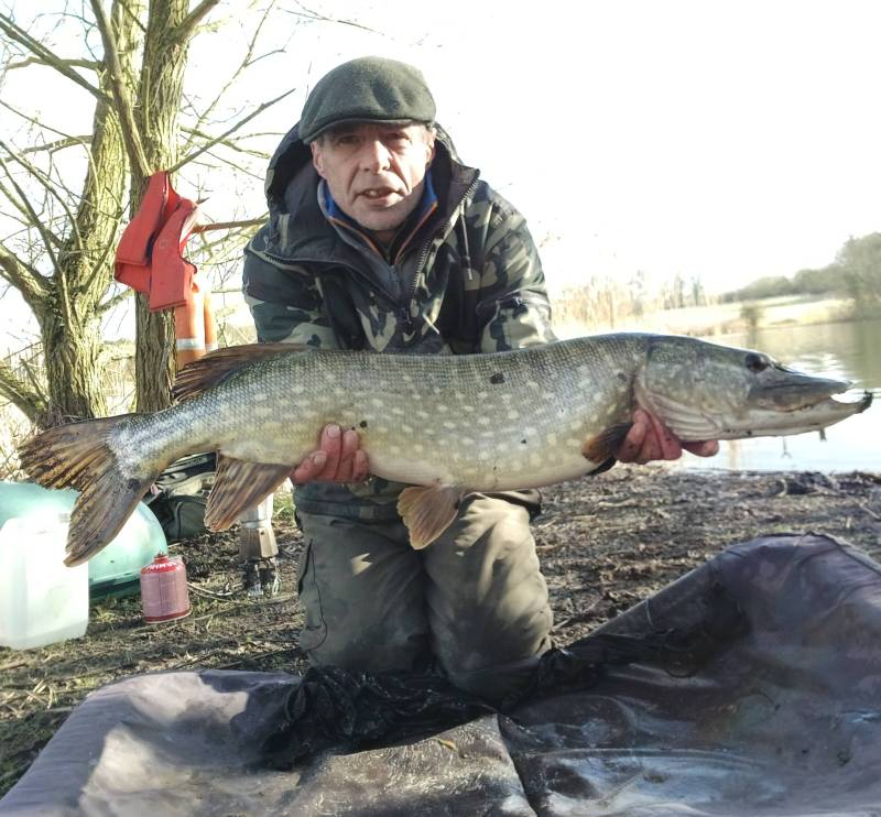 The first swim this morning from 7am until 12.30, not a touch. Had to move, and it immediately paid off. Both on the same rod, first before I had even cast the second rod. First one was 11lb, unhooked, weighed and returned it, bait was still in good nick, so I cast the second rod, got the first one back in, and almost instantly had the second pike at 10lb and ounces, both on the same whiting deadbait. And number 3, long and lean at 14lb on a dead coarse fish. I'm slightly miffed, I broke my chair, but still have a seat in the emergency boat. I should mention that I have a glove on my left hand. At the end of 2023 I got a severe case of blood poisoning leading to abscesses in my throat. Pike rash was a possible cause, so to avoid it I try to remember to wear a glove. They have rubberised palms and are soft leather, they were my American football receivers gloves. For the 3rd fish, the fish opened its mouth itself, and a quick twist with forceps the hooks fell out.