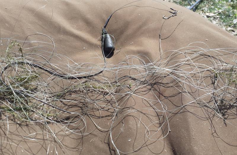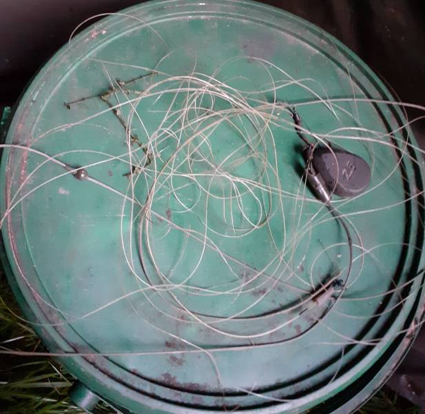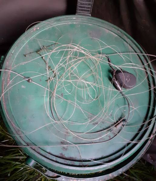 I don't know how many times I have ranted over leaders and leadcore, it is seriously too many to count. What gets me is the advice of 'with all the advice available' to set up leadcore and leaders safely, yet no mention is made of removing the stuff from sale. It is not just newcomers to fishing that don't know how to use the stuff, or even where to use it. Look at these 2 pictures, you can't tell me that they were set up by new anglers, not with where I retrieved them from. Both were retrieved from a weedy lake, snagged up, thankfully with nothing attached, except me where one hook went into my chest waders, and came in after effort, with a bed of weed the size of a small car, original (real Mini). How the hell is a fish going to get away from that lot? Do we really need to continue to be using leadcore, or other leaders?