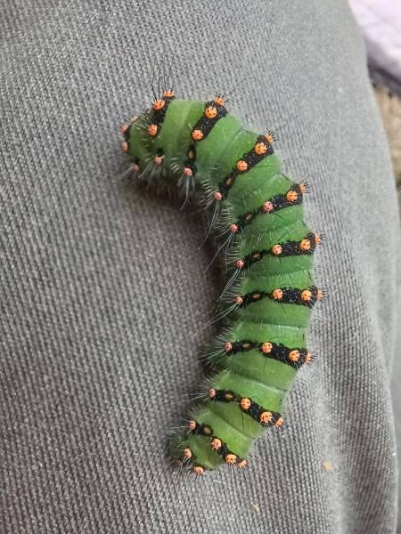 I had this caterpillar crawling along the floor of my bivvy, and so I didn't kill it I picked it up and took the photo. It is an Emperor moth caterpillar and while not rare rare are not particularly widespread.