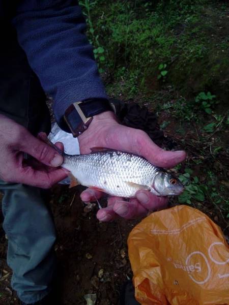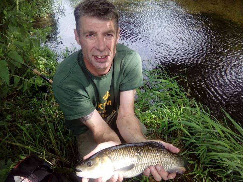 Sky enjoys it, she gets a walk along the river, we take one rod and net between us and take turns for fish, often one feeding and smuggling Sky the occasional floater, the other casting for the fish. The other can then do the netting if required. Dave's fish came on a new spot we'd not seen chub in before last trip, and was a positive take on his first cast, that fish was actively looking for biscuits. Mine came from over the gravel behind my shoulder, the largest of the shoal as well.