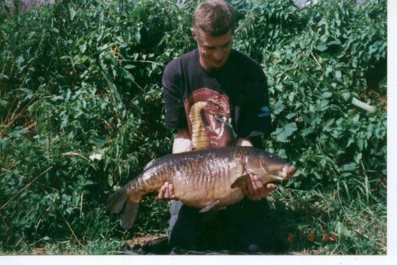 The fully scaled came on the night after the London Bombings. My mate Bruce was on the train when the bomb went off, about 2metres away from it. The poor lady in front of him RIP. I actually caught another fish that night a 23.8, and Bruce was my regular photographer. He would always come down to do my pictures, no matter where he was *. I had tried phoning him to get him to cone down and his phone just went straight to voicemail, which never happened. After phoning other mates to find out how he was my mate Al came down to take pics. *The river 28 I had had to work late Thursday setting up the bars at Ipswich Town Hall and Corn Exchange for a function Friday night, so when Bruce drove up to Taverham, I couldn't go. My alternative was to go down to the river for a few hours Friday. The take happened as I was getting ready to pack up, in fact I had dismantled the landing net. Bruce packed up at Taverham and made it back to Ipswich in a hour to do the photographs. When I first joined Earith I had done a blank not knowing the lake, but the second session Bruce and I walked round looking properly. We set up on the causeway between Pats and Virginia with the rods into Virginia. Before dark I managed to land my first fish from the lake, a beautiful double figure common, which was photographed at the same time as Bruce had a take. Later that evening just as it was getting dark, I managed to hook and land a 24lb mirror. Another Earith session, middle of February, around 1am a real screamer resulted in my first ever 25lb common, and at the time I guess it must have been my second biggest fish. The syndicate owner Ian Jones came down to do the pictures in the night about 10minutes after the phonecall. I had just expected it to switch to answerphone, but he promised to come down.