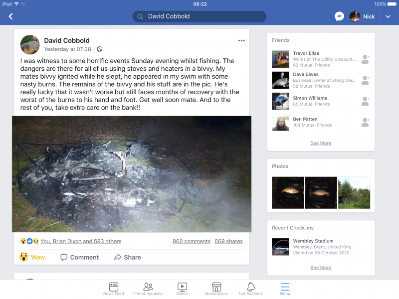 This is a mate of mines Facebook post and happened very local to me. My view has always been don't use a bivvy heater, get decent clothing and sleeping bag