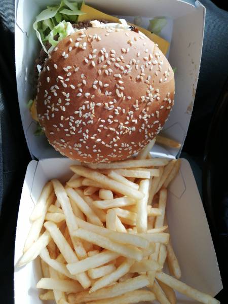Couple of moorhens feeding on leftover McDonald's in the car park , you don't see that everyday