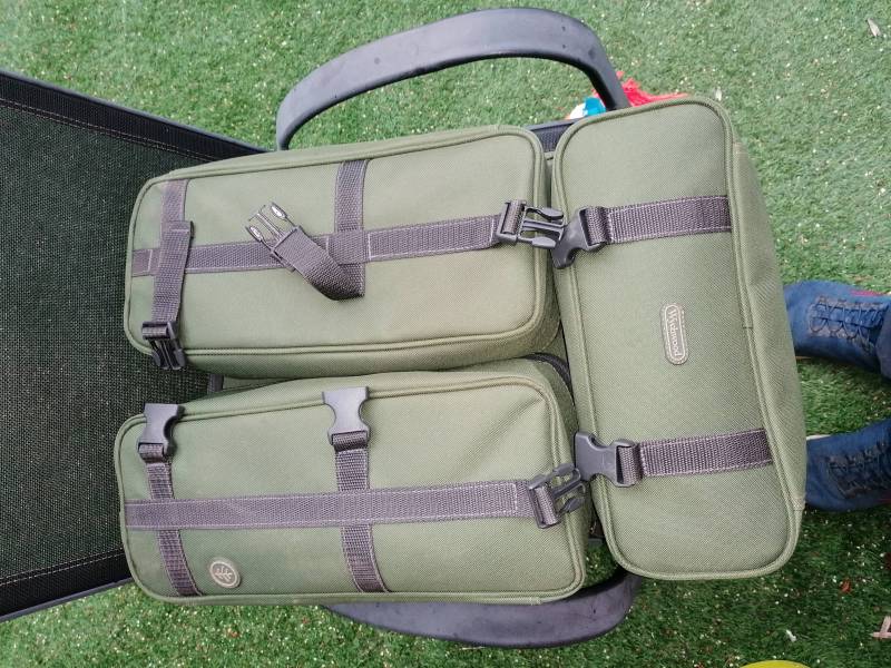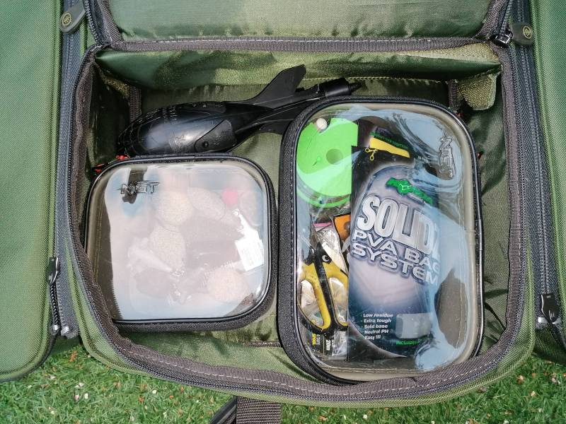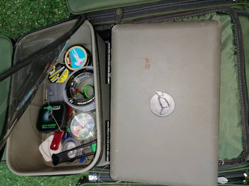 Top half of the main bag korda tackle box fits perfectly, I have an NGT case thing but the zip has just gone but does the job for the time being. Top tip Gardner xl baiting needle best in the world bar none. -