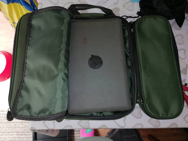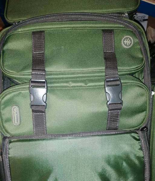 Bottom half I keep my lead pouch, Pva bag kit, and wolf x spod I think it's a great bag as I know where everything is, it's functional goes under the bed and is comfortable to wear even loaded like that. The main section can also be made into 1 bigger compartment, but it works for me like this Bon appetit -